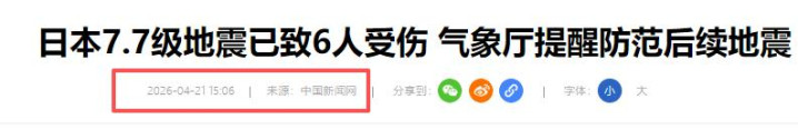 中国新闻网2026-04-21《日本7.7级地震已致6东谈主受伤 形状厅请示贯注后续地震》