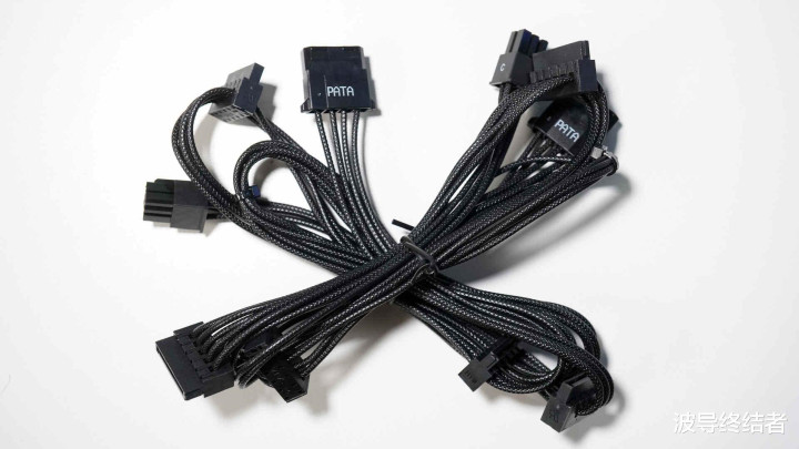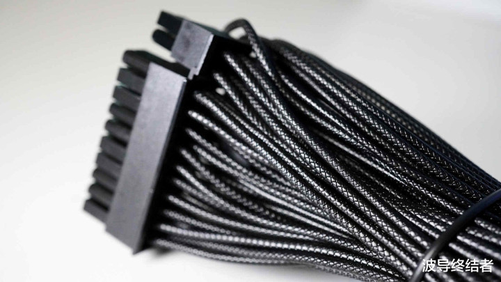 这是一款全模组的电源。然后每次写电源我皆要教唆一下小伙伴,不同品牌致使不同型号的电源,线序界说有可能不同样的,是以线材不成混用,一定要用原装的或者估量客服。金竞蝠系列的电源用的一起皆是蛇皮压纹线材,无论是耐用性依然柔韧度皆额外可以,是市面上反响最佳的线材用料了。